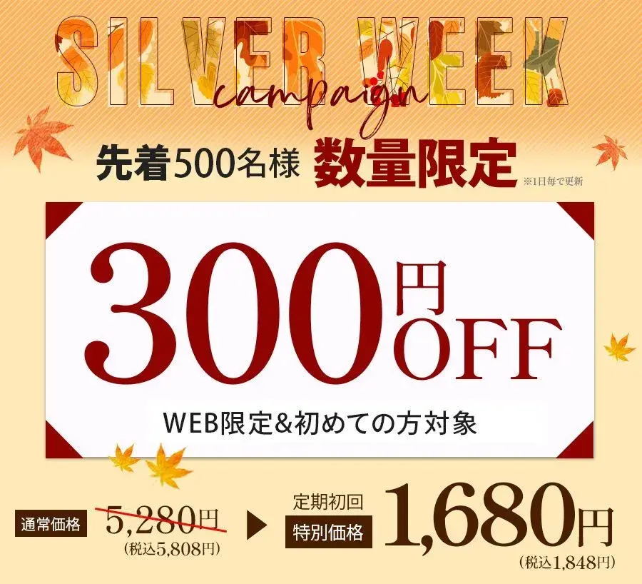 500名様限定で300円OFFクーポン
